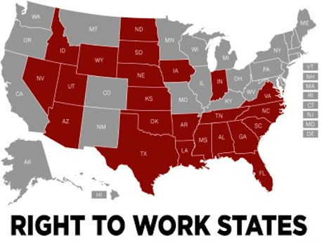 President Obama has been a violent opponent of right to work laws. He sees them as an attempt to quash his union buddies – which, of course, is right, since the unions bankrupt states (see Illinois, California). But Obama won re-election on the backs of those who rejected his policies.