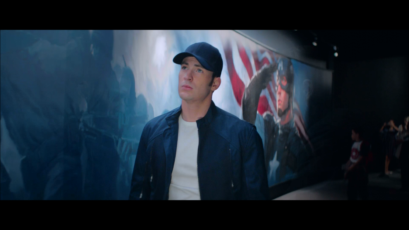 Rogers visits a WWII museum which features some of his exploits from the war. Rogers seems to be reflecting on who he is and what Captain America really stands for. Notice the kids idolizing him just as they did back in WWII.