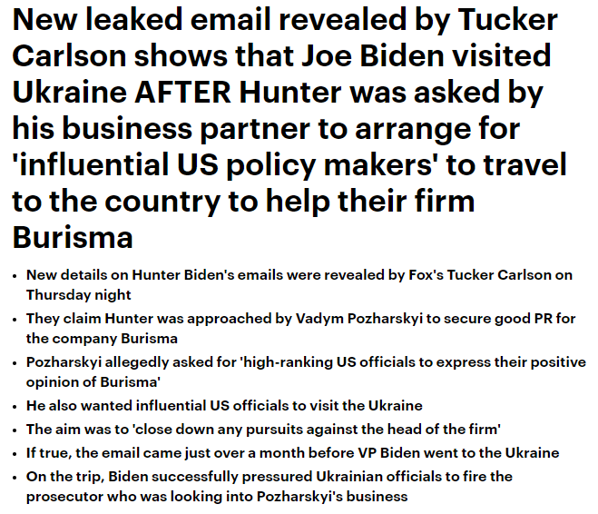 Joe Biden visited Ukraine AFTER Hunter was asked by his business partner to arrange for ‘influential US policy makers’ to travel to the country to help their firm Burisma – LINK