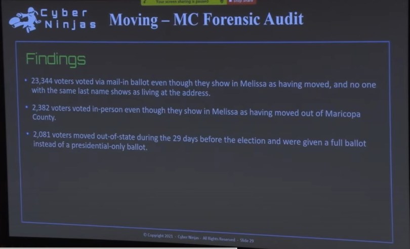 CN people who moved and voted at old address 1 September 24, 2021 1057 × 641 Maricopa County Arizona Audit Over 17K Duplicate Ballots, Counterfeit Ballots, 23K of People Who Moved Away, More! Election Servers Over a Million Deleted Files Up to Day Before Audit: Were Connected To Internet! More!