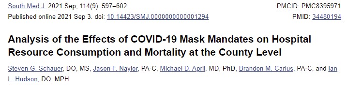 Southern Medical Journal/US Army Institute of Surgical Research Study: County Mask Mandates Made No Difference