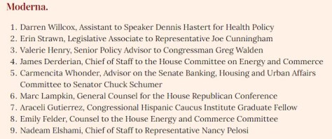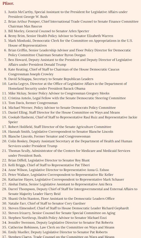 In October alone Pfizer tapped Sudafi Henry, Joe Biden’s former legislative affairs director from his days as Vice President.