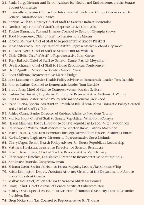 Justin McCarthy, who served under George W. Bush as a Special Assistant to the President for Legislative Affairs, and Ben Howard, who served as a Deputy Assistant to the President and Deputy Director of Legislative Affairs under Donald Trump, both lobby for the pharmaceutical giant.