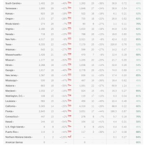 In recent trends the NYT reports that Florida is down 49%. Texas is down 43%.