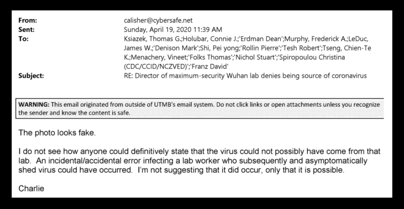Charles Calisher – professor of microbiology at Colorado State University and the top of nearly 30 individuals who signed the Lancet letter – emailed several others scientists on April 19th, 2020, just weeks after the statement’s publication.