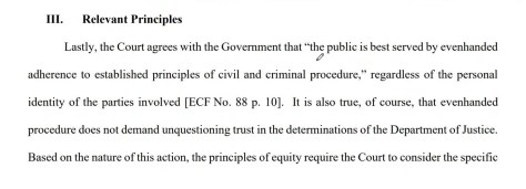 Cannon also points out that the DoJ is asking her to simply presume a series of compound premises (some stated above) without evidence. Standing case law from the 11th Circuit prohibits judges from simply accepting the government’s conclusions in their filings before they are proven and/or litigated.