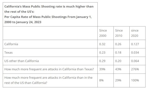 One thought on “California Mass Public Shooting Rate 276% Higher than Texas Since 2020”