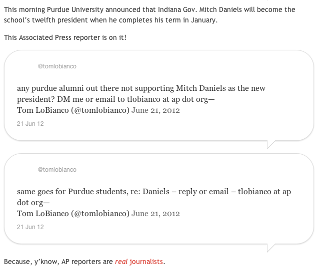 Indiana AP Reporter Trolls for Negative Comments About Governor Daniels on Twitter